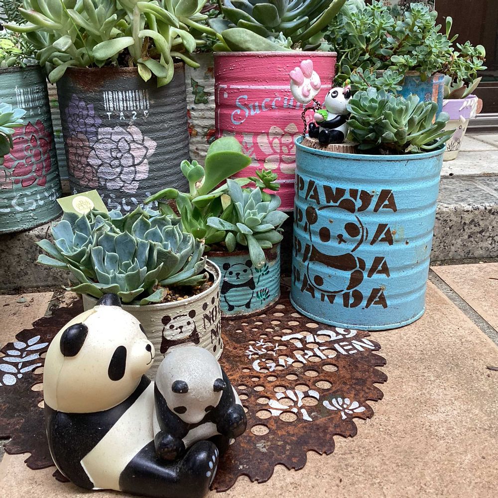 パンダの鉢たちも多肉ちゃんも可愛いですね🐼