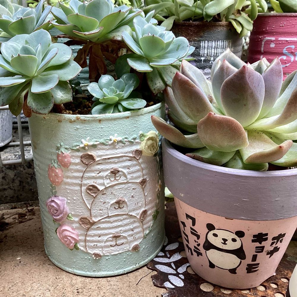 可愛いリメ缶たちと多肉たち🥰