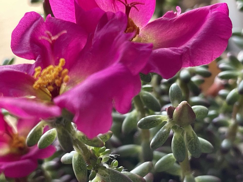 室内で花を咲かせてるポーチュラカピンキー🌸