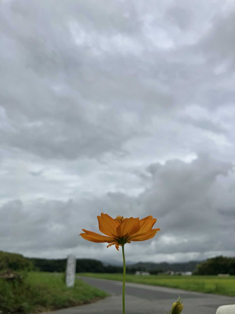 重たい曇り空に何か話しかけてるようです。気持ちが暗くなりそうなどんよりとした日もお花が健気に咲いてると、気持ちが晴れますね☀️😉