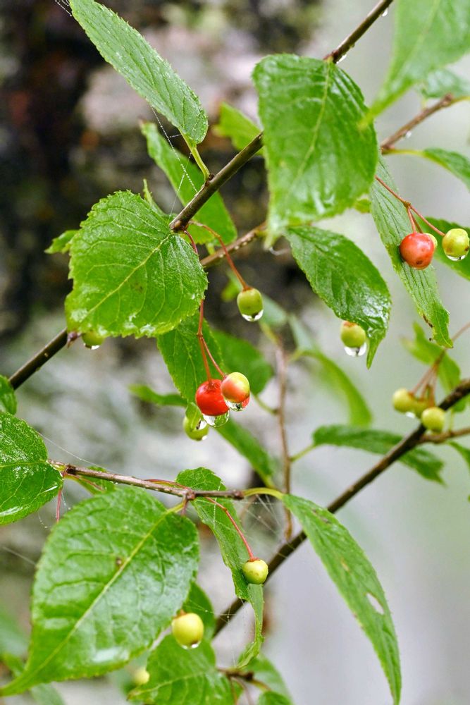 長野県入笠山ハイキングシリーズ✨サクランボの様な小さな赤い実も滴を沢山付けていました。