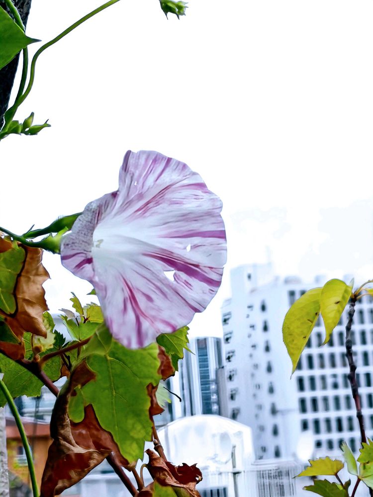 この時期にやっと咲いたアサガオ