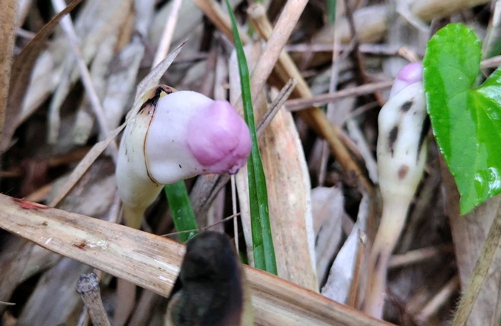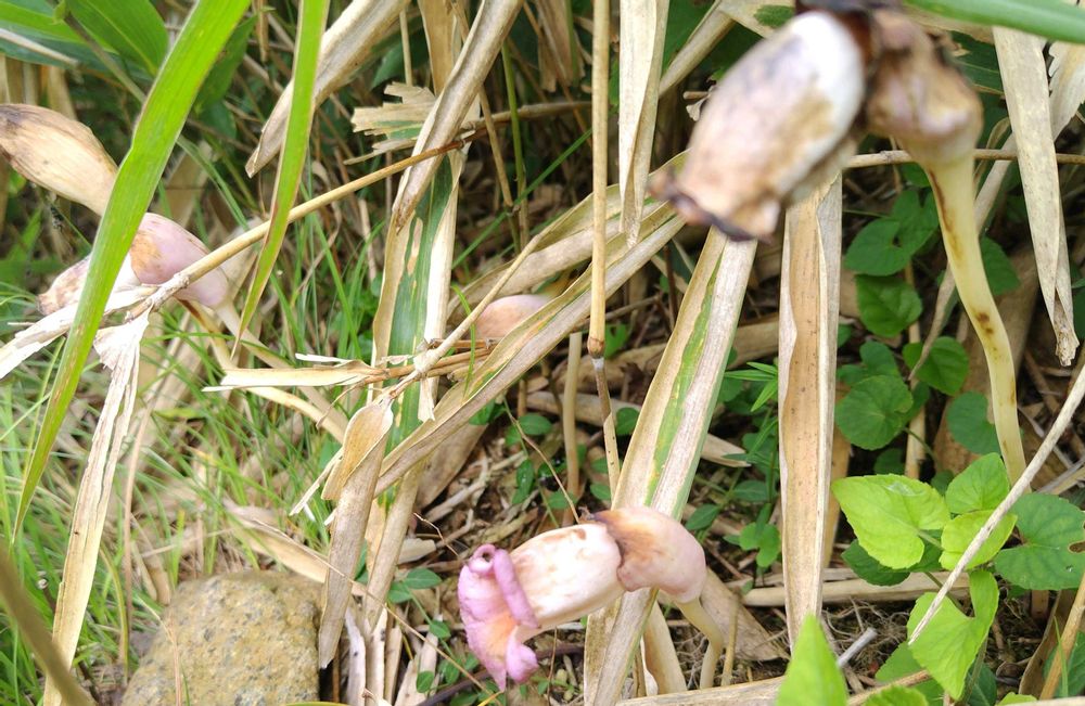 ナンバンギセルより分厚いくちびるです。ススキや笹に寄生。かき分けかき分けようやく見つけました。四枚目は発生したばかり。五枚目はおじいちゃん、おばあちゃんになると色褪せてしまいます。