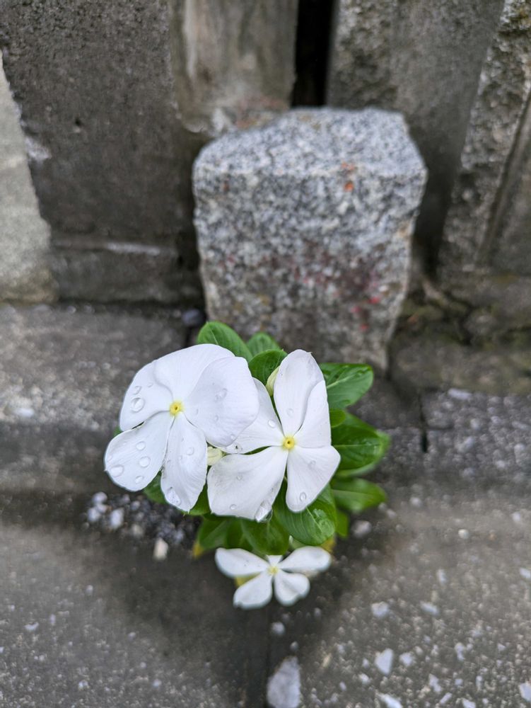 この夏、暑いのに、お隣との境界のコンクリートにも、挟まれながら、しっかり育った日々草。