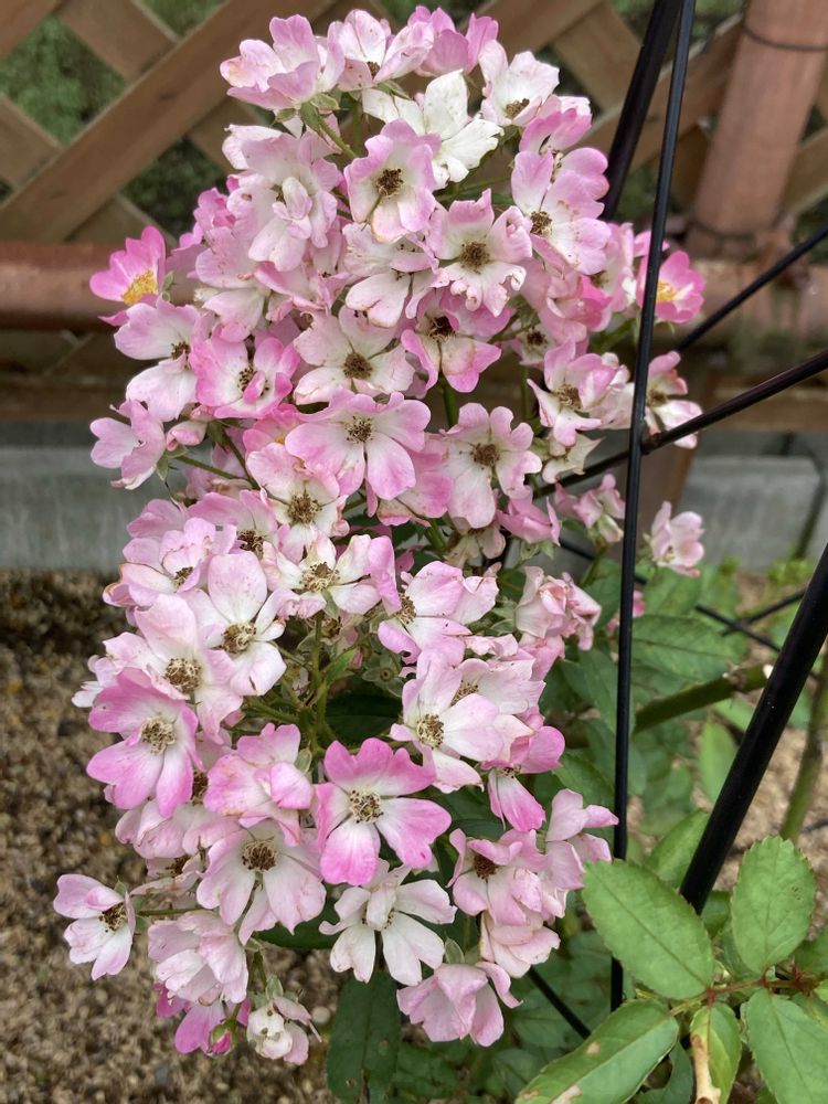 つるバラ、バレリーナでは?かわいい名前でしょう。私の投稿の中にもあります。