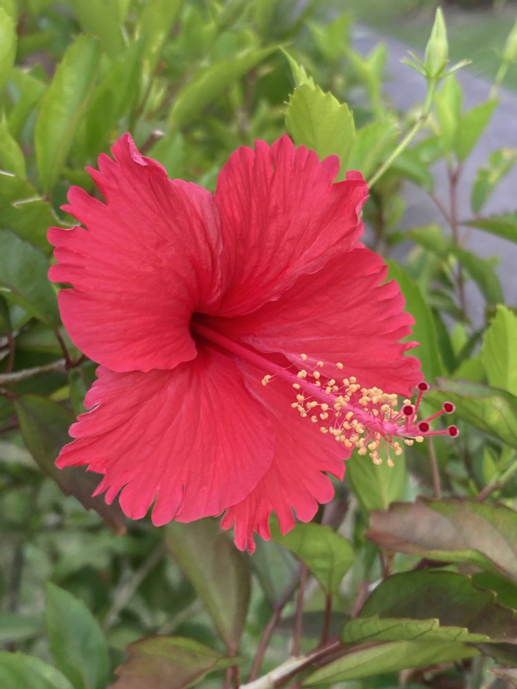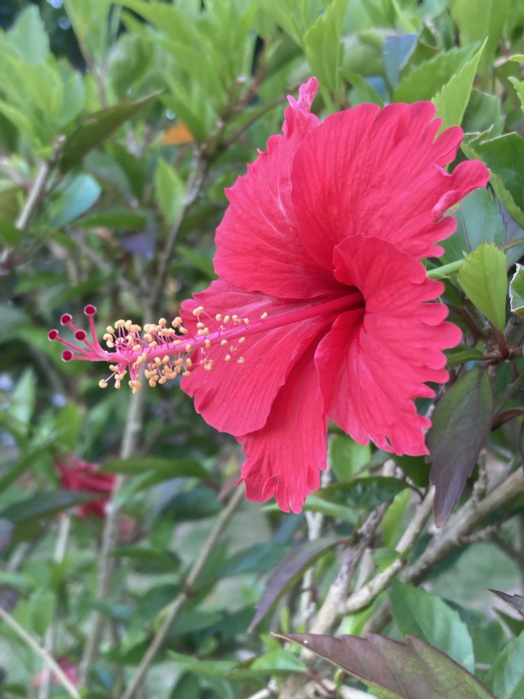 沖縄のホテルのプールサイドに咲いていた真っ赤なハイビスカス🌺