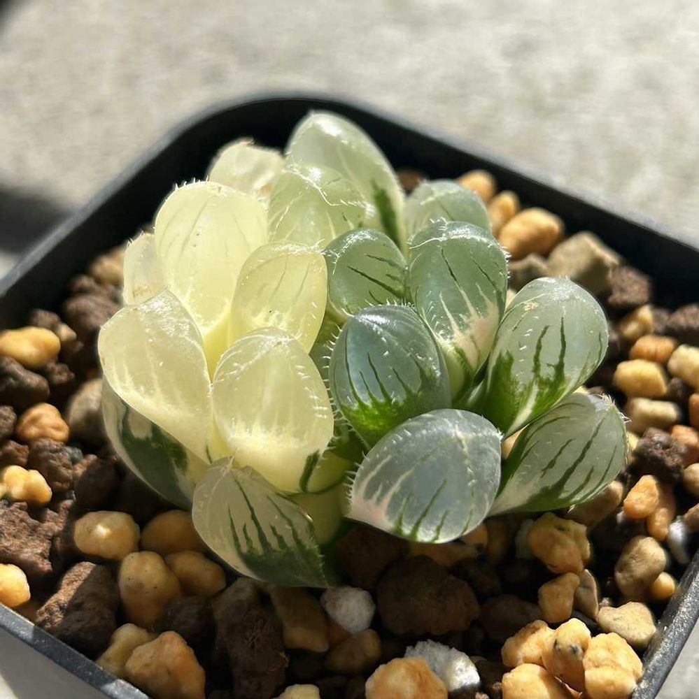 斑入りハオルチアは、光も弱めでいいし、成長も遅いので、植物のかたちを維持したい、室内の観葉植物にもいいと思います!