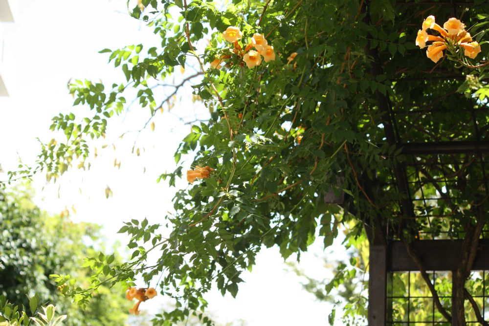 隣りの団地の庭に咲くアメリカノウゼンカズラ🧡