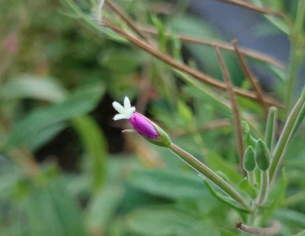 花弁は4個で紫紅色、先端が2浅裂しハート型に見える😊