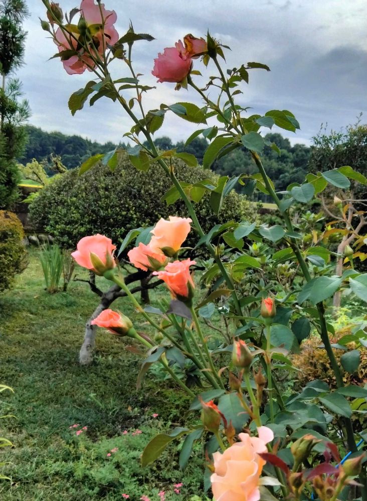 庭のサンセットグロウさんはたくさんの花を咲かせてくれたので、台風が来る前にカットして飾りました😊🌹✨