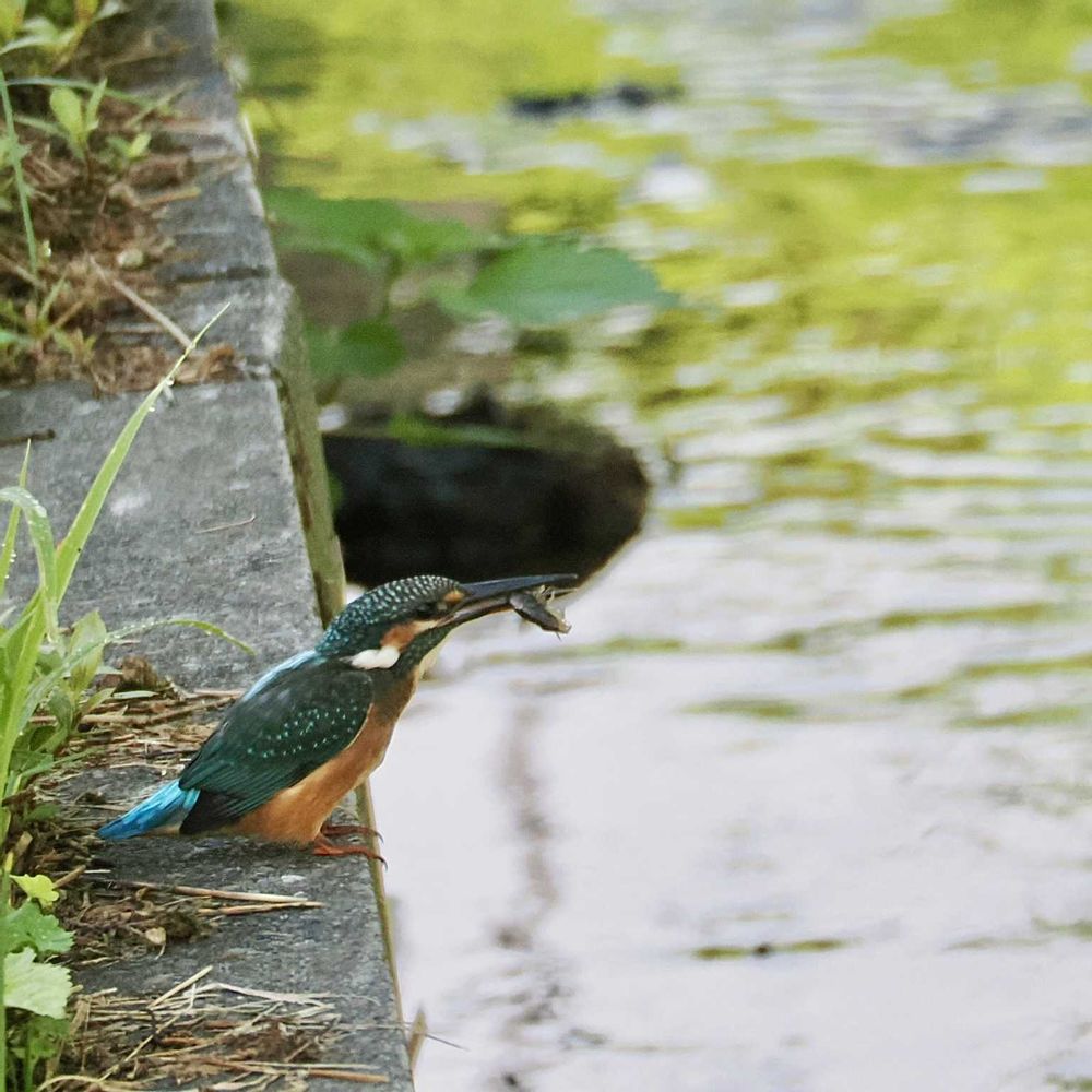 こんにちは、カワセミの幼鳥さんしっかり、エビをゲット🦐