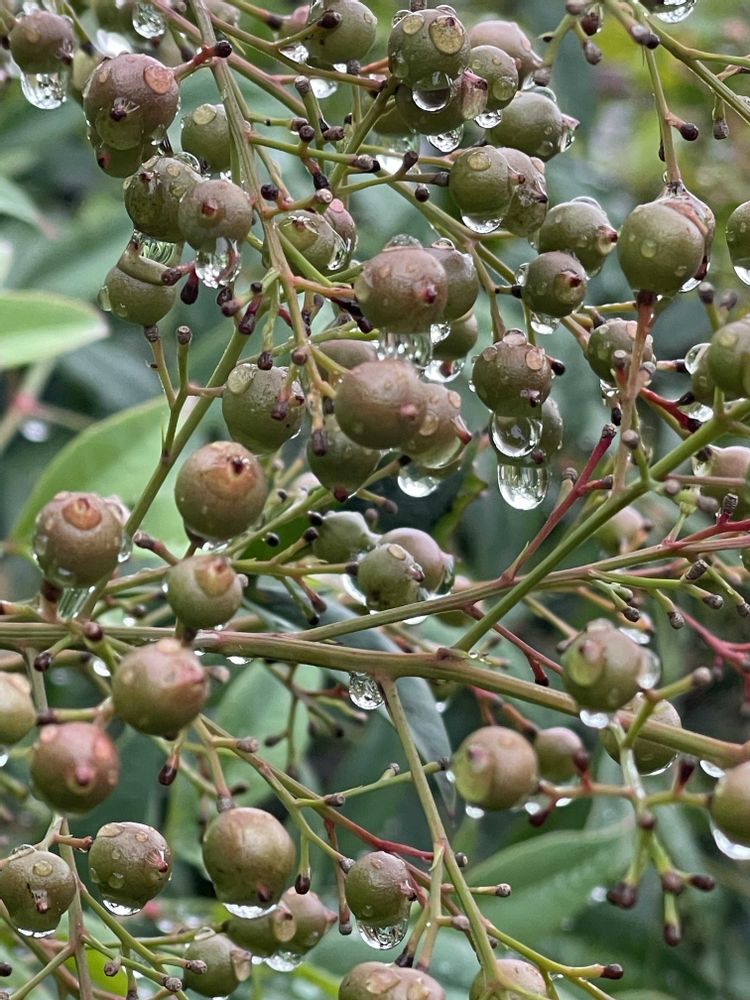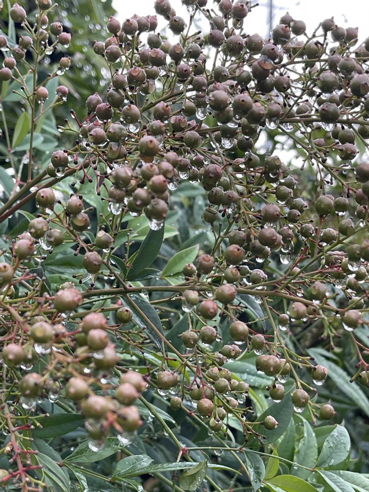 ①②③ この雨☔に濡れて雨粒が綺麗😍な「南天の実」と「雨空と南天」です。☺️✨