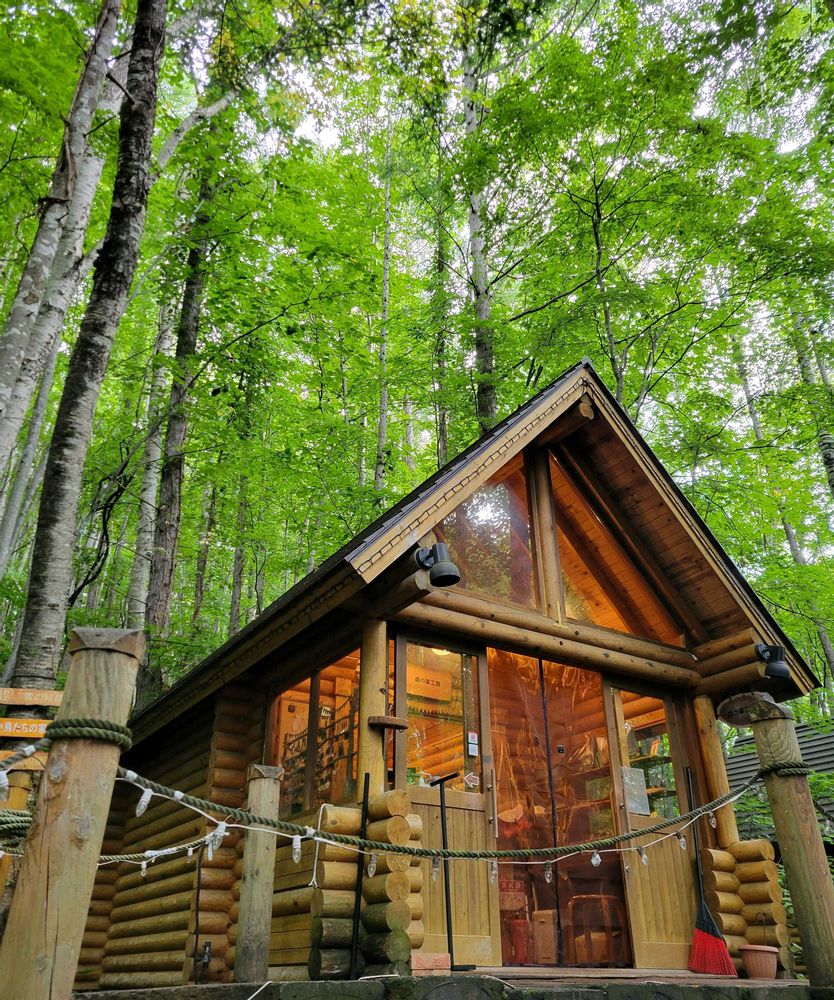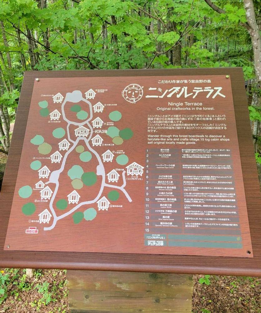 ニングルとはアイヌ語で森の知恵者のことで、ニングルテラスには自然の素材をモチーフにした作品を紹介するログハウスの店舗が緑溢れる森の中に点在しており、爽やかで心地好い素敵な空間でした。