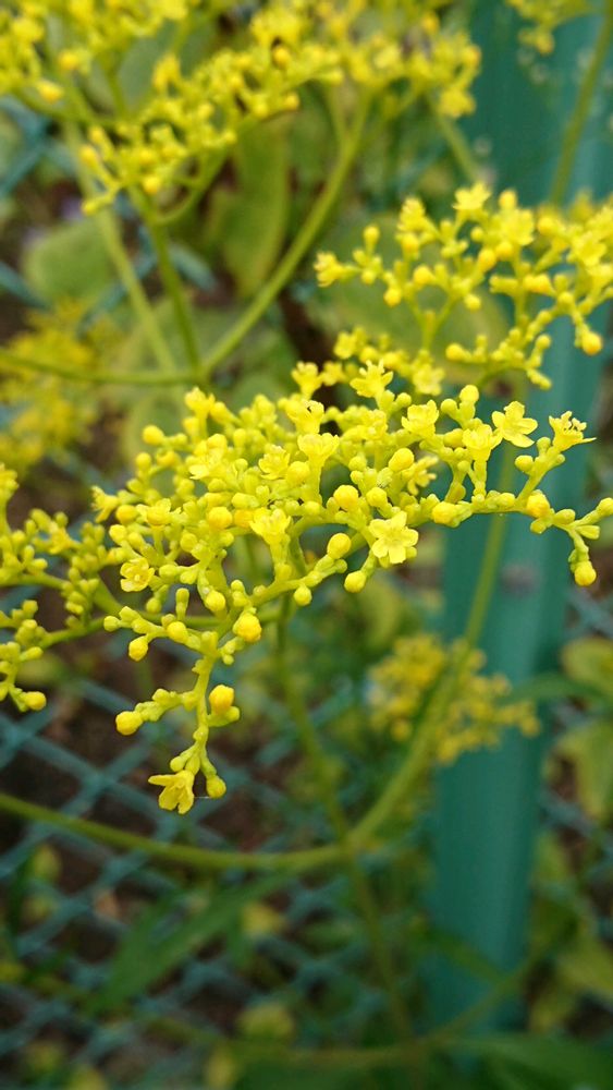 眼科の帰り、駐車場に一際目立ち咲いていた。草取りに励む女性に、オミナエシで、七草の一つだよと教えていただく。ビタミンカラーに、心が浮き立つ。