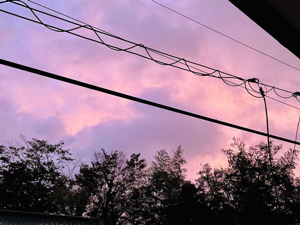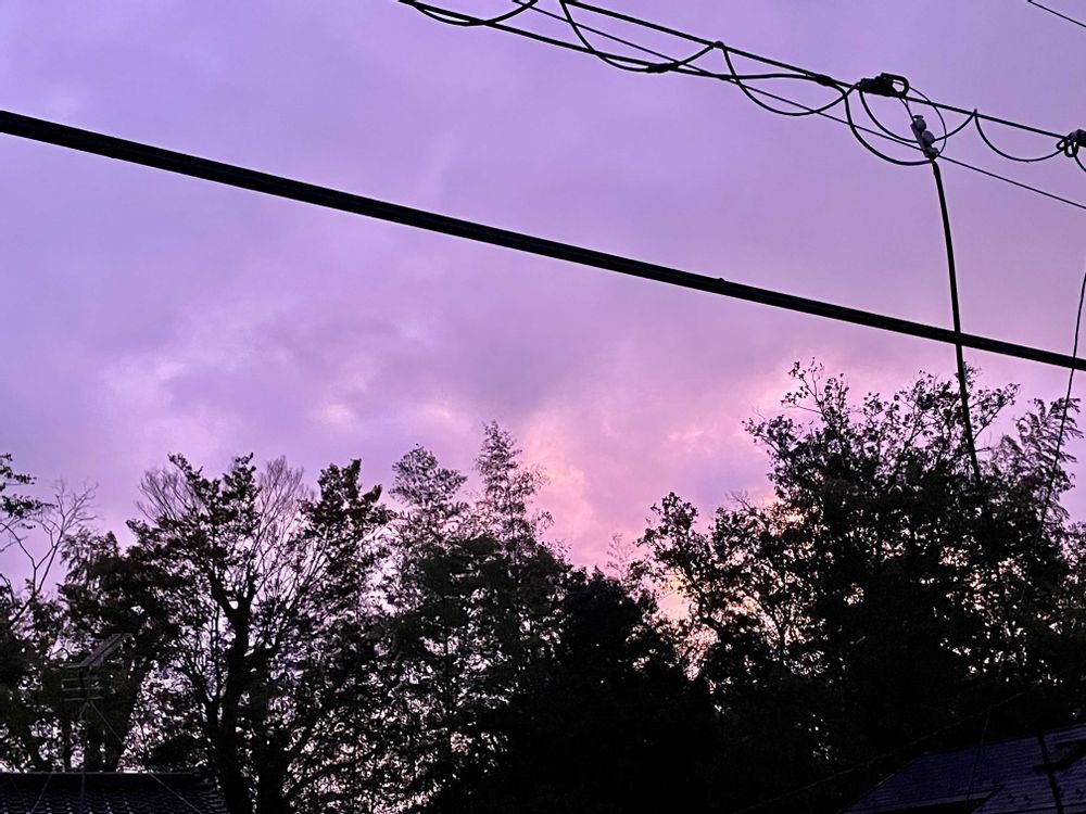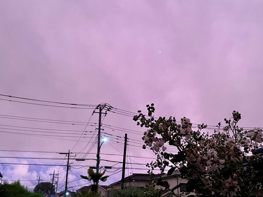 昨日の夕方真っ赤な夕焼け土砂降り雨でした。