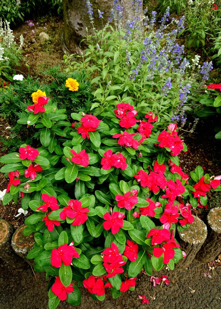 マンションの花壇の「ニチニチソウ」とブルーサルビア🌿❤️