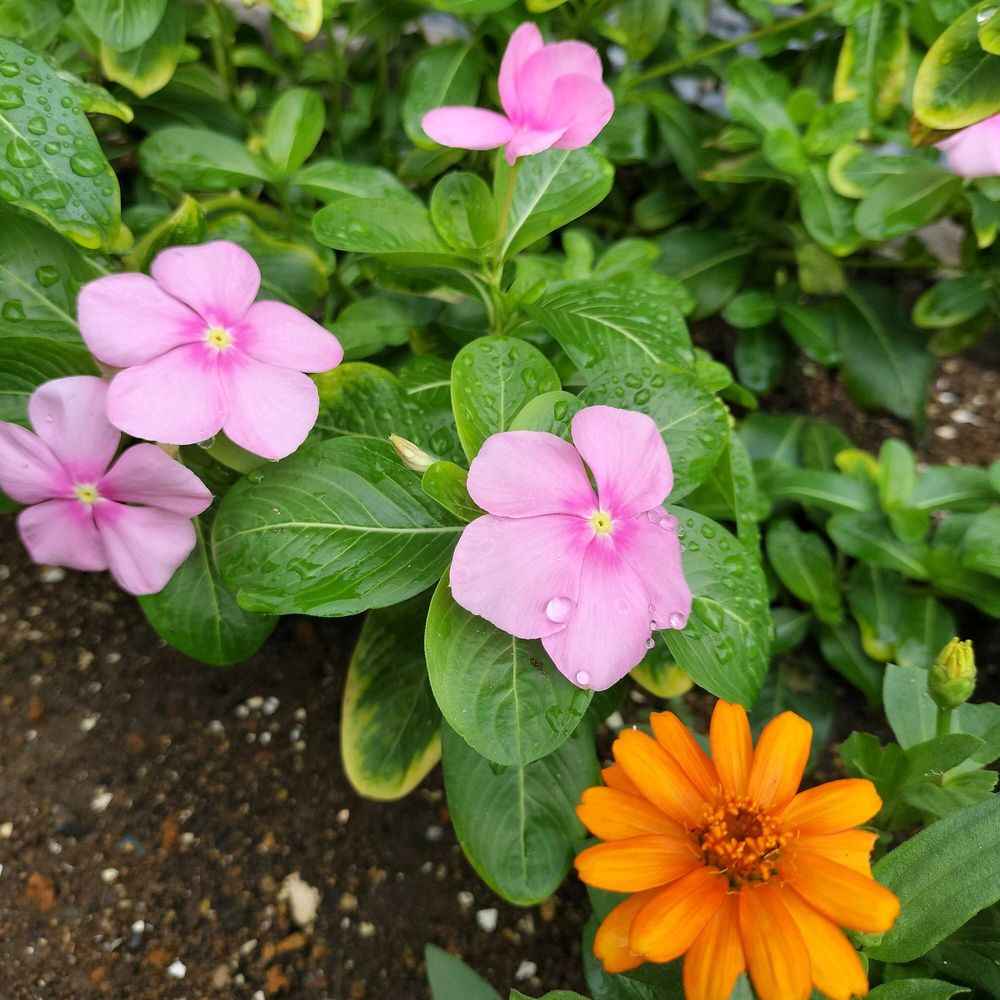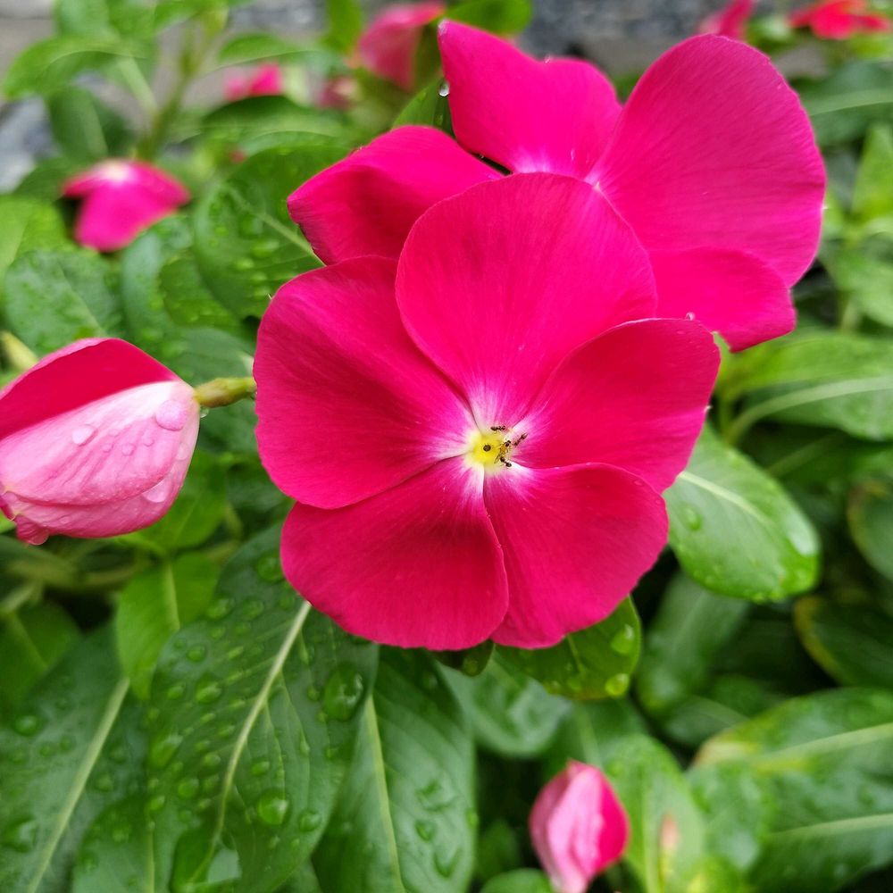 ニチニチソウも☔🍃にまけず可愛いです😉💕💕