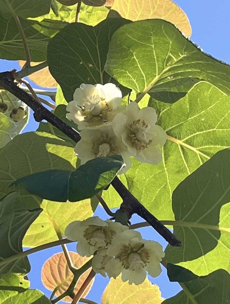 木になっているキウィを見るのは初めてです。お花もね🌼