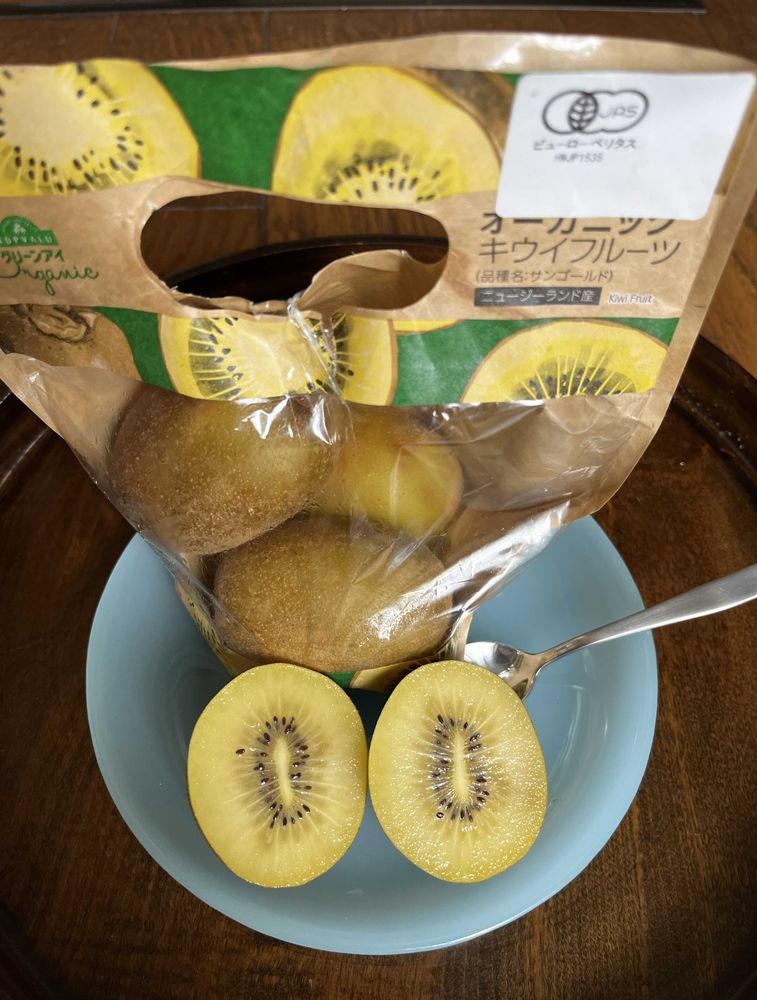 今日のゴールデンキウイ まだ酸っぱくて😂