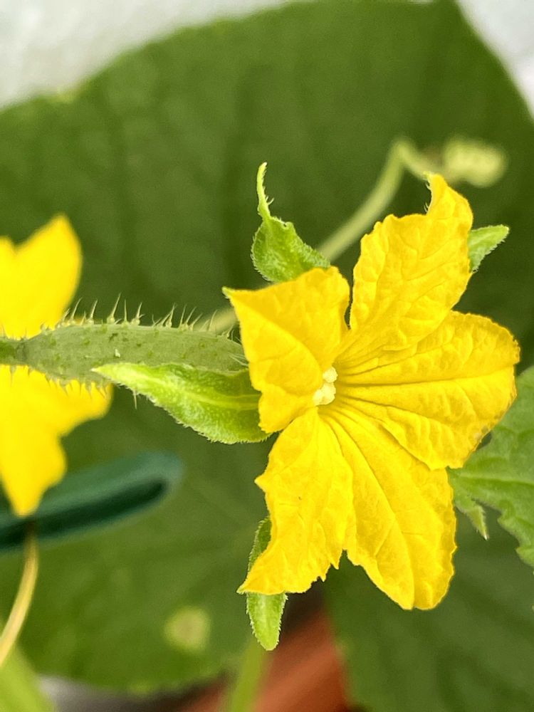 キウイではなく種蒔きっ子のキュウリの花が咲いていました♡