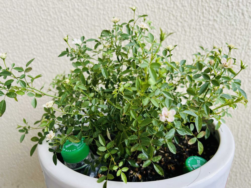 涼しくなったら、ペットボトルを一本取り除いて土を増やす予定。