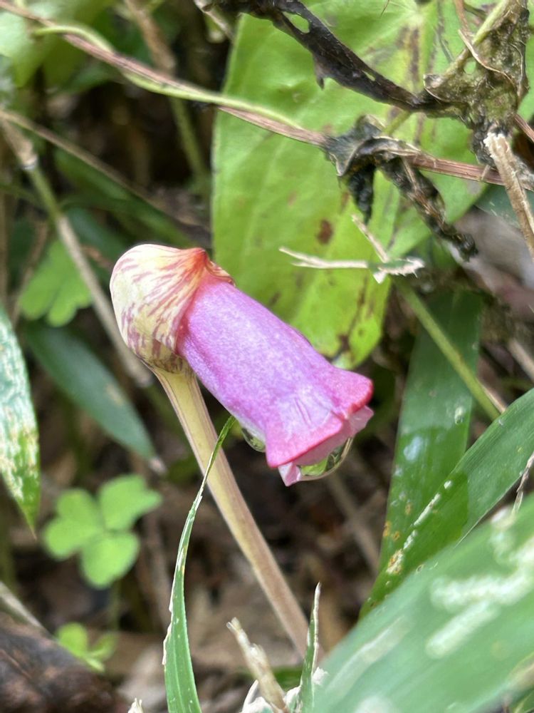 地上に花茎を伸ばし筒状の花を咲かせていました♪
