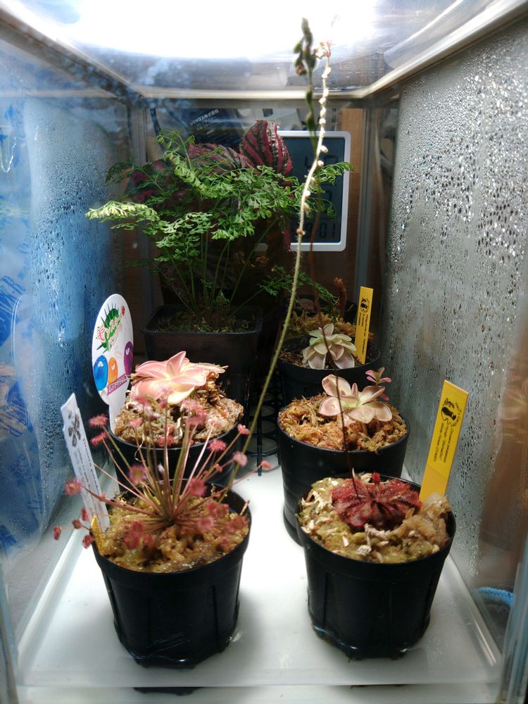 常湿管理だとベゴニアが葉っぱ落とすわ、ピンギやドロセラの粘液が乾くわで最悪の状態でした。
