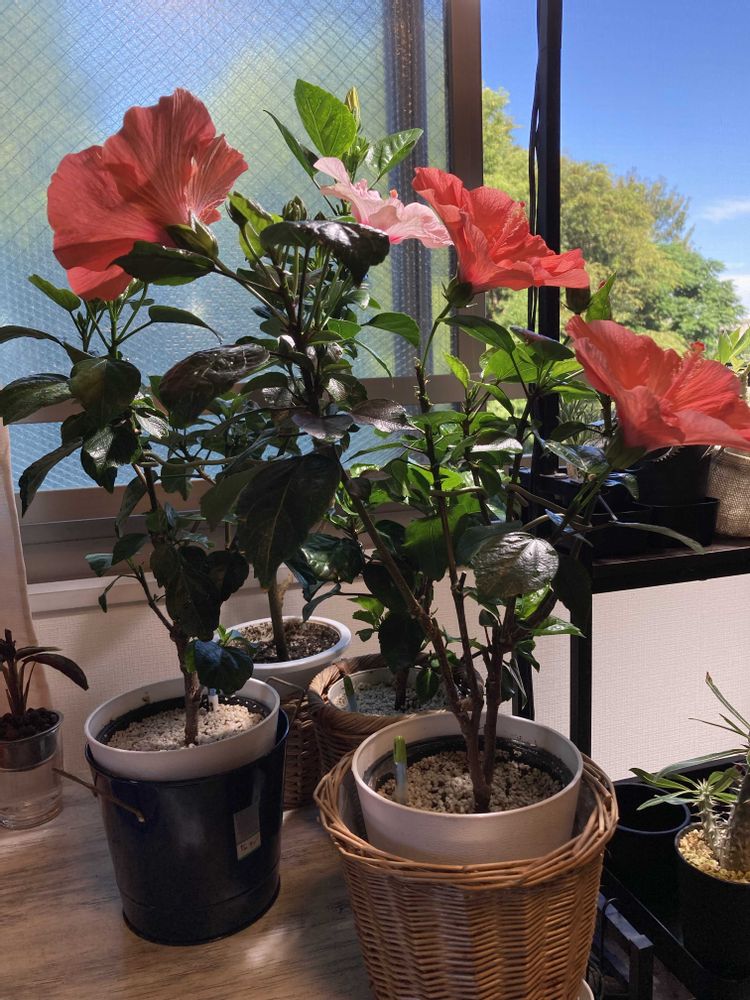 今日は久しぶりにいい天気☀️ハイビスカス🌺LOVE❤️南国🏝️Aloha🏝️🏝️🏝️台風🌀避難の多肉たちもベランダへハイビスカスも太陽へ🌞