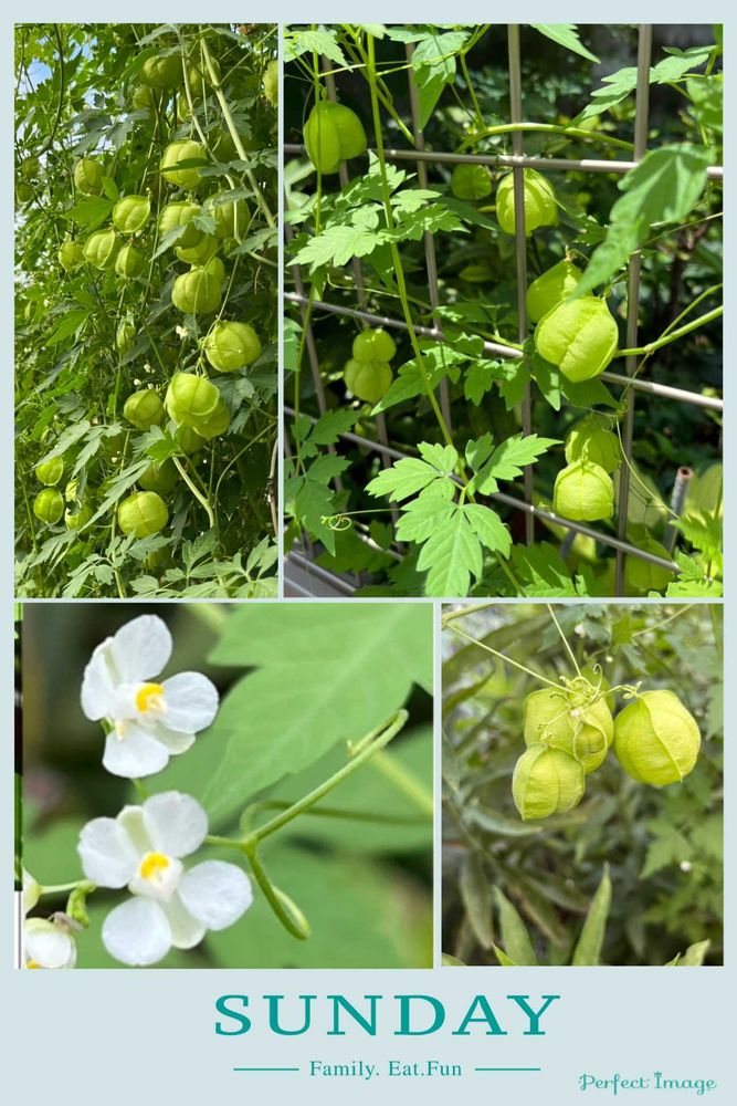クルッとしたつる。綺麗なグリーンの葉。紙風船のような果実。