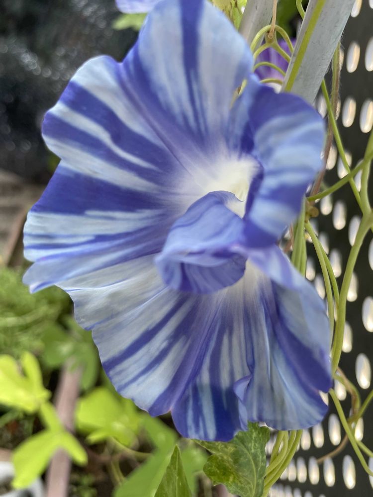 06.9/2のあさがお🤗台風の時、フェンスにからまってたあさがおチョッキン✂️1鉢だけ残せた朝顔が咲いた😆このあさがおは今までつぼみのまま開ききれず咲けなかったあさがおだったのに、、よかった😆
