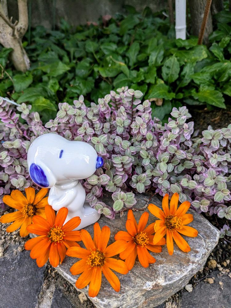 色が涼しげなスヌーピー やさしそうな顔していて、かわいいの🤗💓 カリシアも、地植えで冬まで頑張ってもらいますよ💓💞