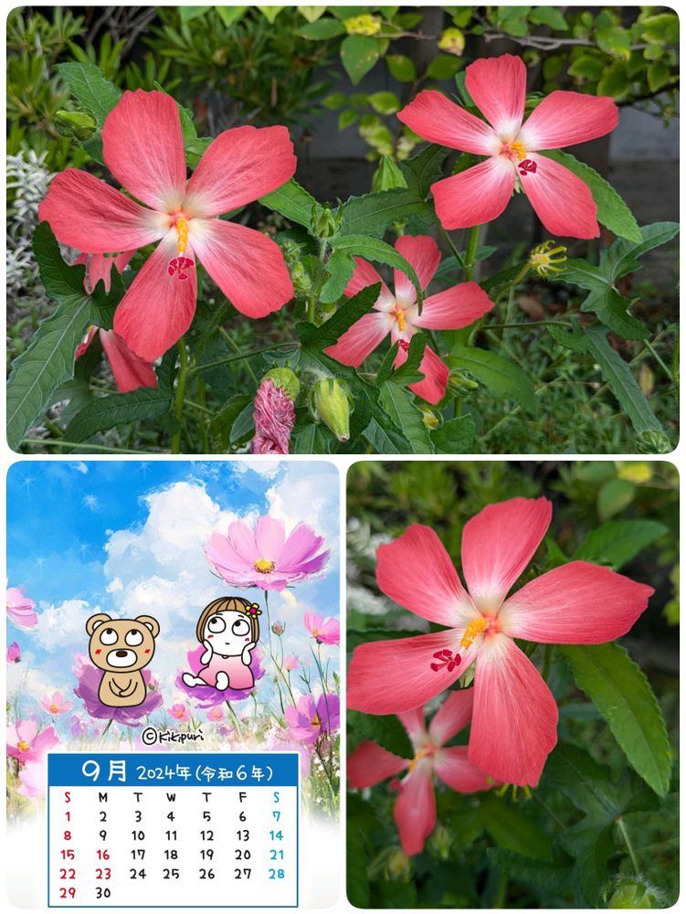 して迷惑な台風だったね😢💦 9月なのにまだまだ暑そうだね‼️ アベルモスクスの赤いお花、優しい色合いでいいね〜(ꕤ ॑꒳ ॑*)ノ💓今月もよろしくね😋