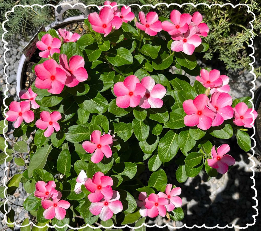 挿し芽したニチニチソウもこれから咲き出すとまた鉢いっぱいに💦