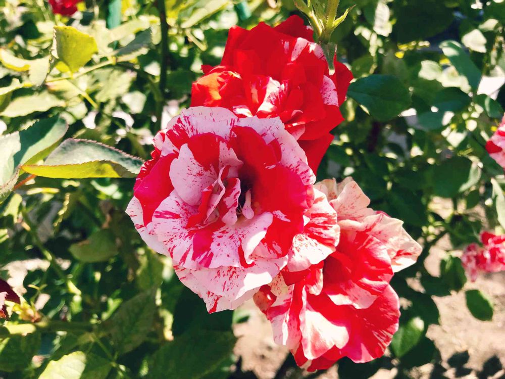 赤白で絞り、鮮やかな薔薇🌹ですね!