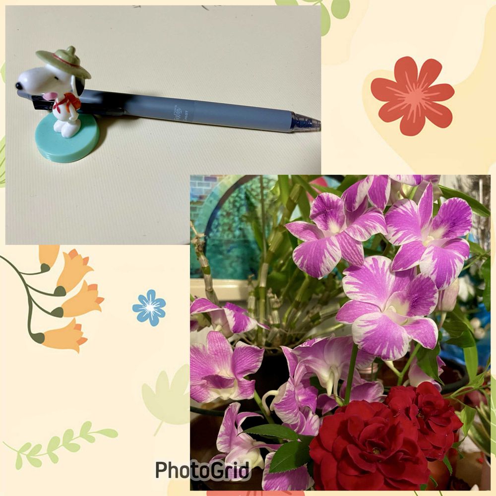 デンファレさんとミニバラさんとチョコエッグスヌーピーかな🎶