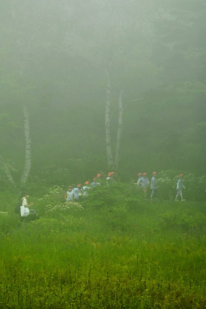湿原には霧が立ち込め視界が悪く、ちょっと怖い感じもしたのですが静寂を破るカワイイ声。