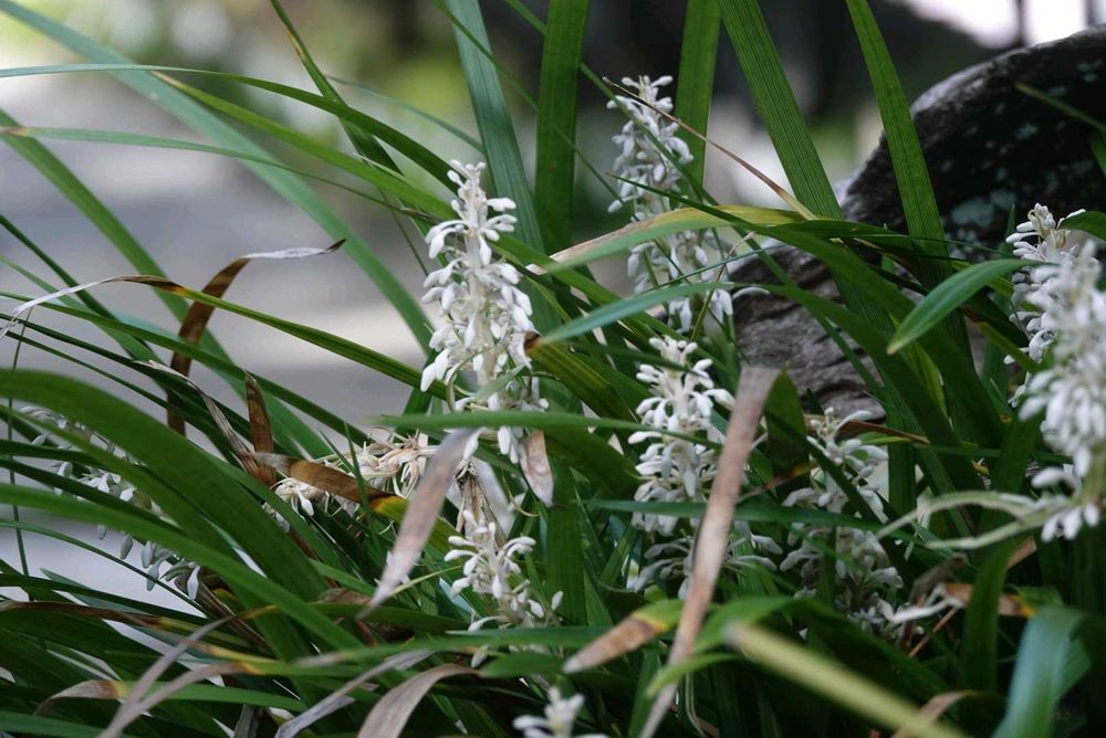 近くにも幾つかは多分自生があり、少し足を伸ばせば自然公園のシダの谷にはもっと立派なノシランの群生は見られるのですが、なにしろここはそこに比べると随分近くて気軽に見に行かれます。但し、、神社が大切に育てていらっしゃるので自生では無く数も群生というほどでは無いのですが。行きたい時に見に行けるのはとても嬉しいですよね!