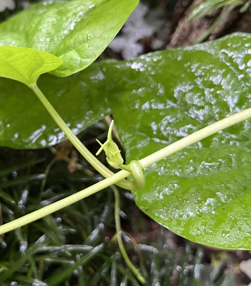 ③鉢の中から1本だけ発芽したこの子。やっと蕾らしいものが見えてきました。普通の朝顔とは違うなぁ🤔昼顔か?夕顔?お友達から種をもらっていたのですがなかなかでてこなくて諦めていたのです。他のお花か?謎です🤣葉っぱだけがめちゃくちゃモリモリなんです。お花が咲いたら投稿しますね💕