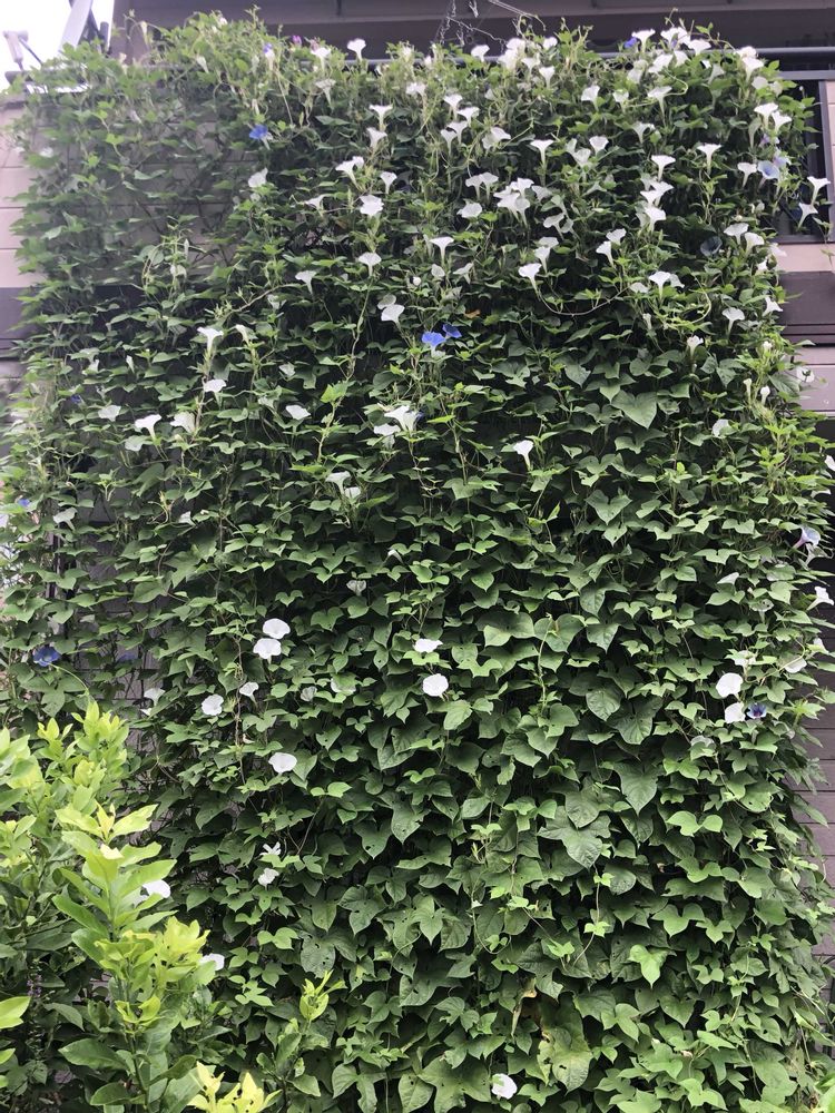 蕾がヘブンリーブルーみたいに3個ずつ付いてくるからきっと西洋朝顔の系統だと思う。凄い繁殖力だから緑のカーテンにしています💚🤍💙