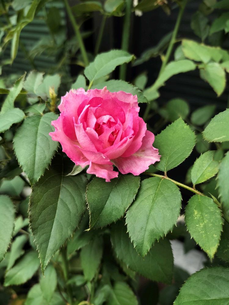 イスラムの説話「千夜一夜物語(アラビアンナイト)」の語り手の名前がシェヘラザードというそう。その妹ドニアザードから(シェエラザードの枝分かれ品)このバラはドニアザードと名前がつけられたらしい。シェへラザードは毎夜、王と話し続け、妻の不貞に心が狂ってしまった王の心を癒したそう。シェエラザードは落ち着いた色合いの紫がかったバラ。それよりも明るい色彩のドニアザードは、天真爛漫な妹のような雰囲気を感じますね😄