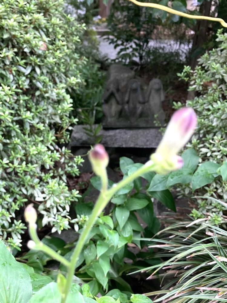 阿佐ヶ谷神明宮の"見ざる聞かざる言わざる🐒"の石像の前で「ホトトギス」が咲いていた。7日の土曜日、8日の日曜日、ここでは例大祭を斎行。