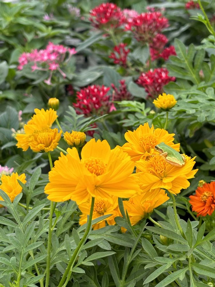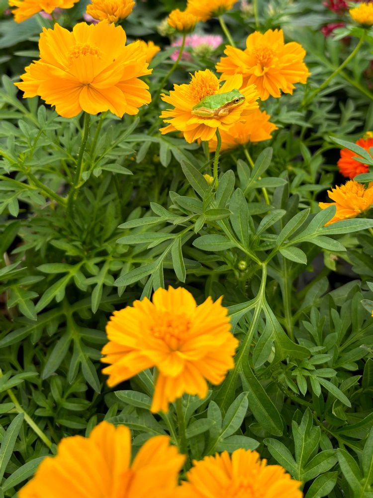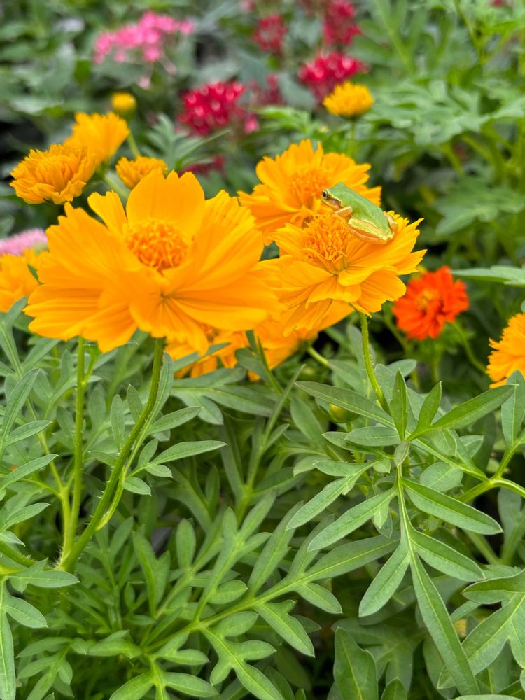 ラッキーさんのコスモス,カエルさん,黄花秋桜(きばなこすもす)の投稿画像