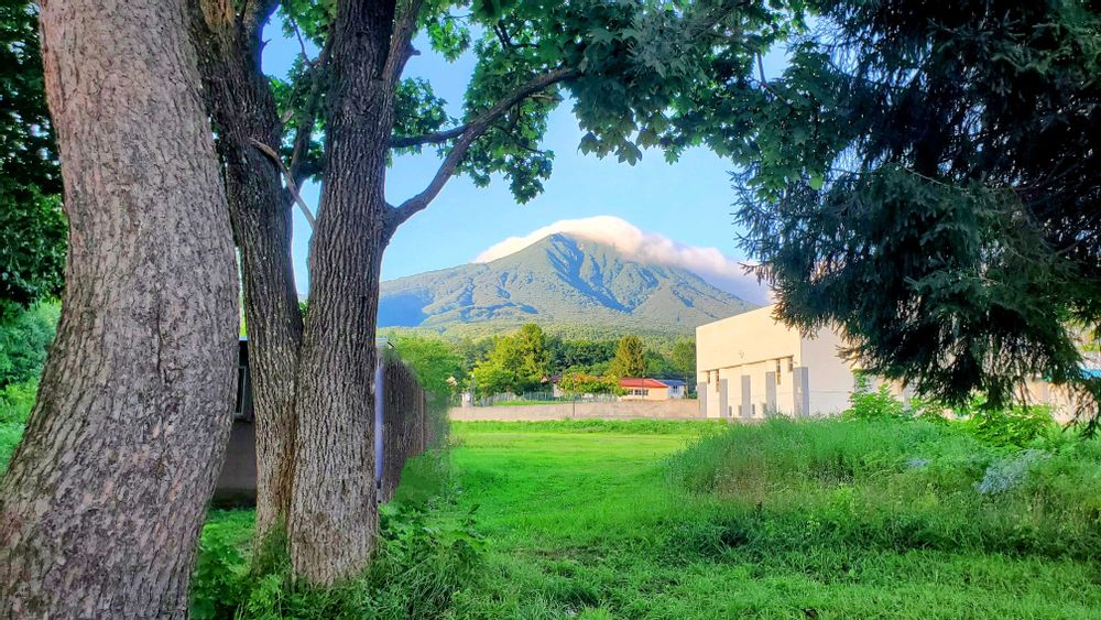 ナラの木からのぞく岩木山🗻