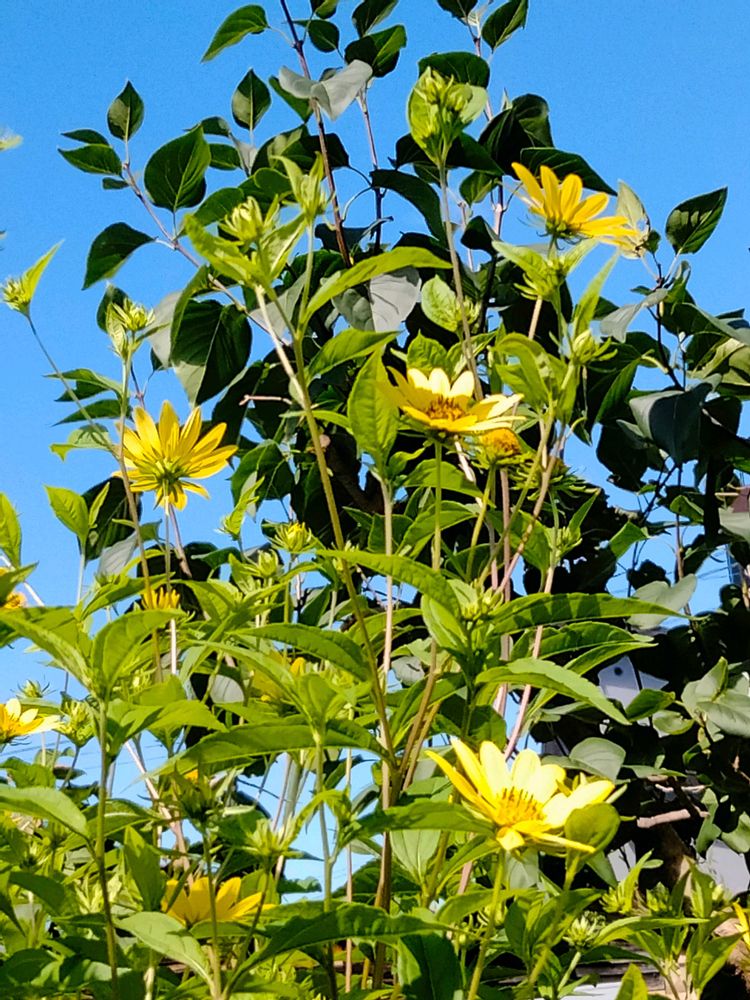 最近の青空に黄色い花が映えます💛