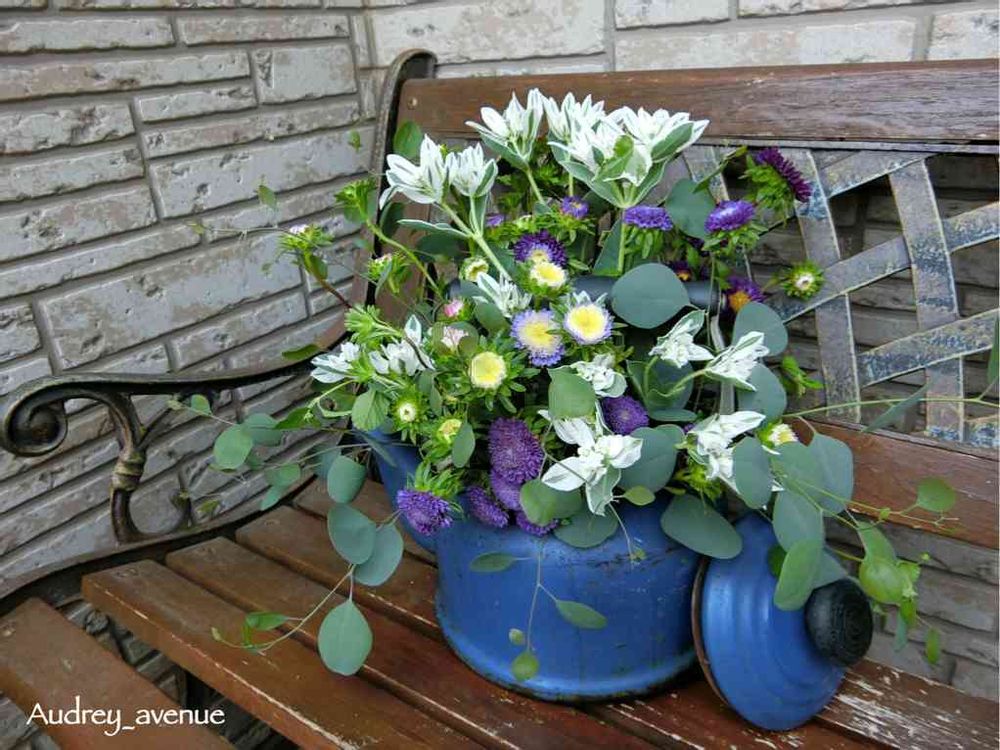 激安の花束から3つ目のアレンジは捨てようとしてたルクルーゼのケトル?ヤカン?へ💐(かなり汚いです😂)
