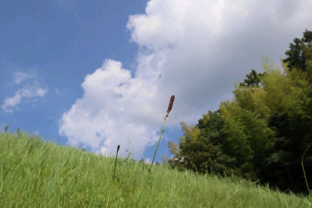 良い景色に白い雲の中にポッンと ワレモコウが 良いですね