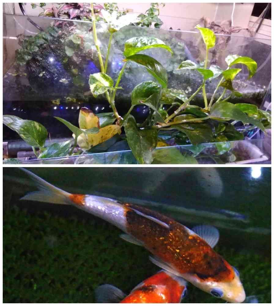 鯉の水槽のウォータープラントのポトスが伸び放題😋💦