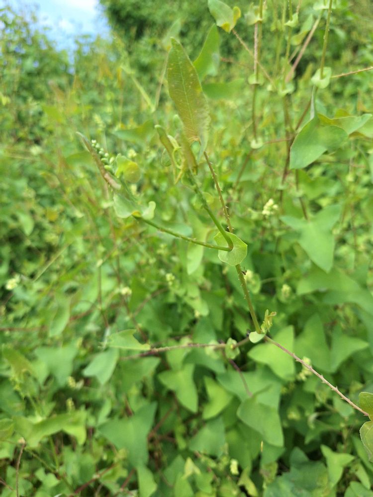 ツル性の植物で他の雑草と絡み合っていて刈るのが大変です。