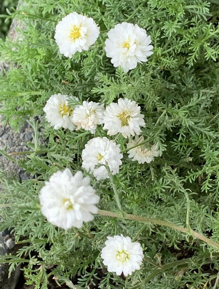 ダブルカモミールは丈が20cm くらいしかないのと宿根草なので手がかからず、アンダーに寄せ植えもいいです。