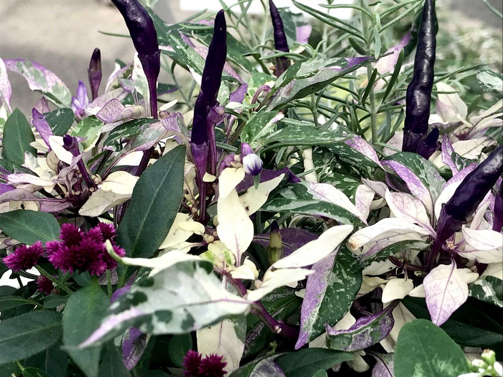 白と紫の斑入りで、実は濃いパープルのとっても素敵なトウガラシでした💚🤍💜